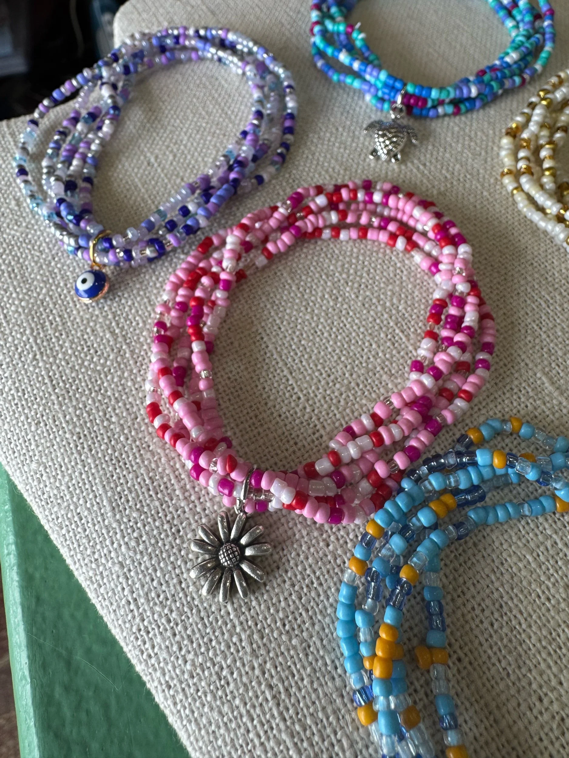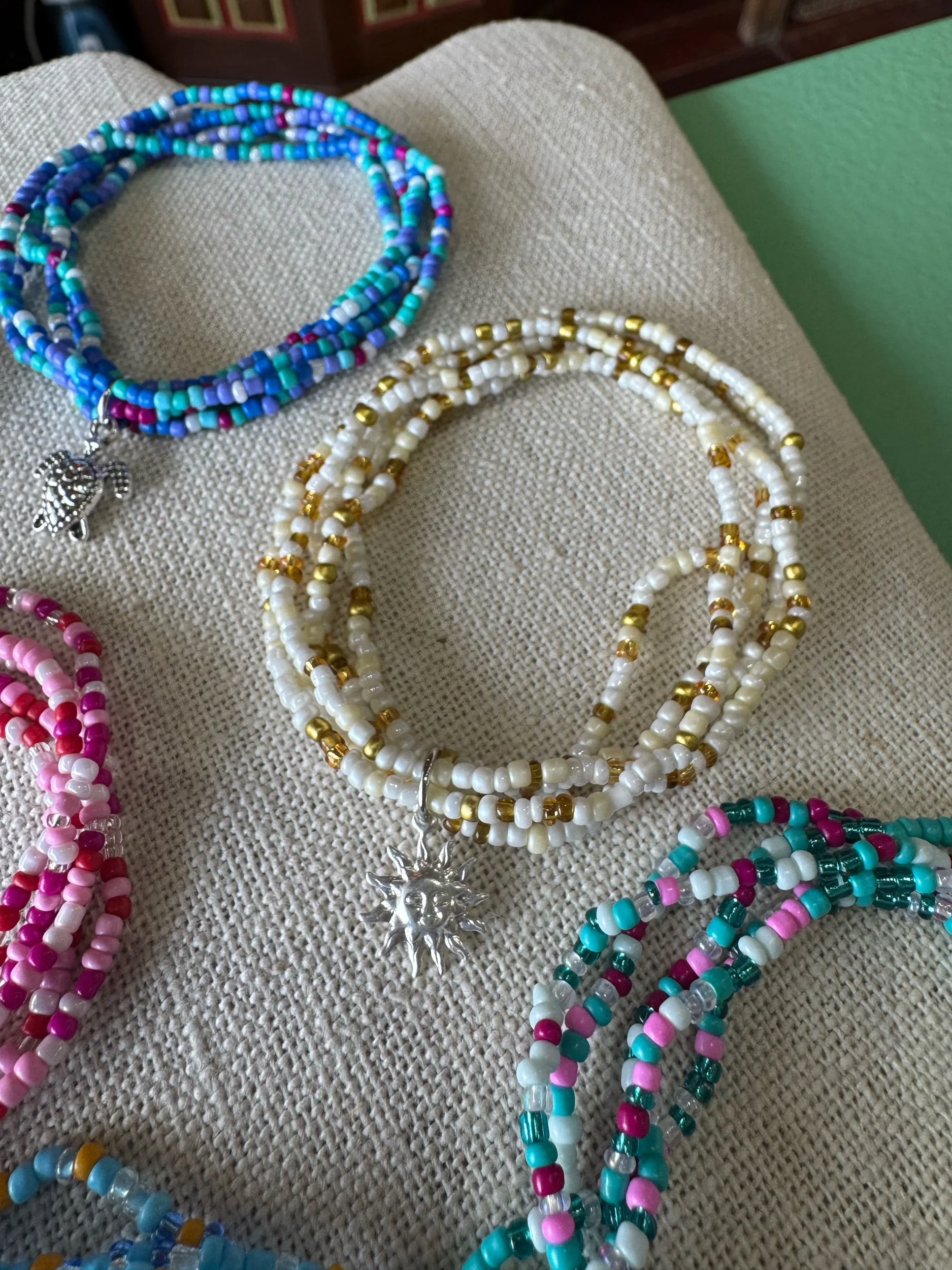 Shop Dreaming of the beach stacked bracelets $13.00 Blue Apatite Cube Necklace $65.00 Blue Apatite Coin Necklace $46.00 Chucky Pearl Blue Apatite $60.00 Sold Out Blue Apatite stacker necklaces $47.00 Blue Apatite and Fresh water pearls $50.00 Blue Apatite Bracelets $28.00 Melt Ice bracelet $6.00 Too Bright to be ignored collection from $35.00 Valentines Necklaces from $27.00 Heart Earrings $15.00 Valentines stacking bracelets from $13.00 Satin Bandana Scarf Charm Necklace $35.00 The Rat necklace 🐀 $40.00 Assorted Findings - Finishing Clasps & Crimp Beads $10.00 Jewelry Pliers Set $42.00 Signature Gemstone Necklace $45.00 Themed Bracelet Making Kit $8.00 Stretch Magic Beading Cord $6.00 Jeweler's Wire $22.00 Crimping Beads $6.00 Crimper Pliers $13.00 Bent-Nose Pliers $13.00 Round-Nose Pliers $12.00 Flush Cutters $12.00 Needle-Nose Pliers $14.00 Felt Beading Board $13.00 Beaded Glasses Holder Kit $25.00 Phone Charm Kit $10.00 Key Chain Kit $10.00 Gift Card from $25.00